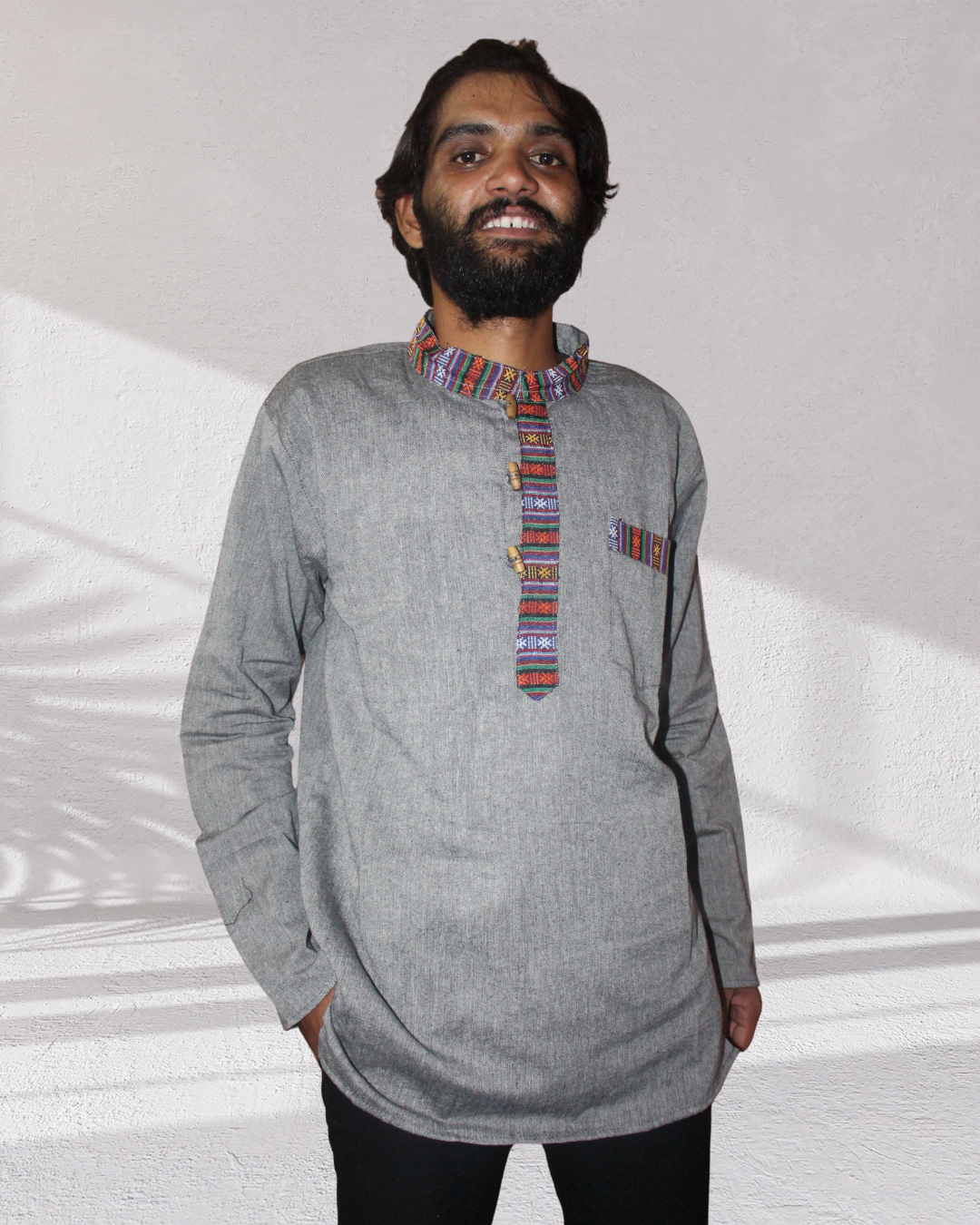 Grey Kurta Bhutani Border Shirts for Men #Nivento'x #NewDesign #BestLooks #Neerkart