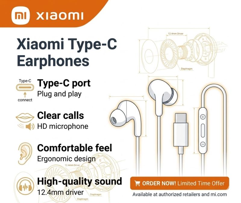 Type-C connector → plug & play on modern phones (no headphone jack needed)
